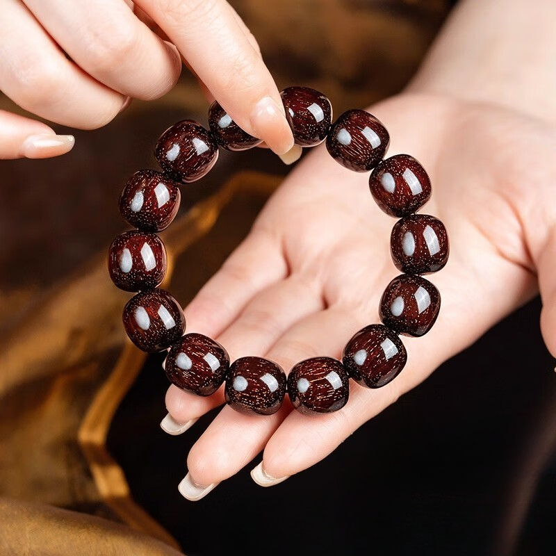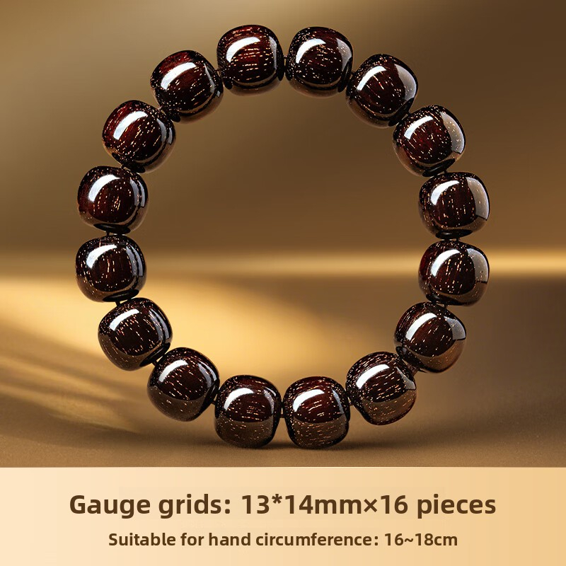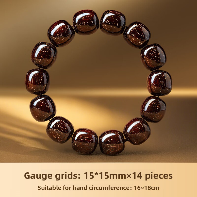 Red sandalwood bracelet with full golden stars, sandalwood old-style beads